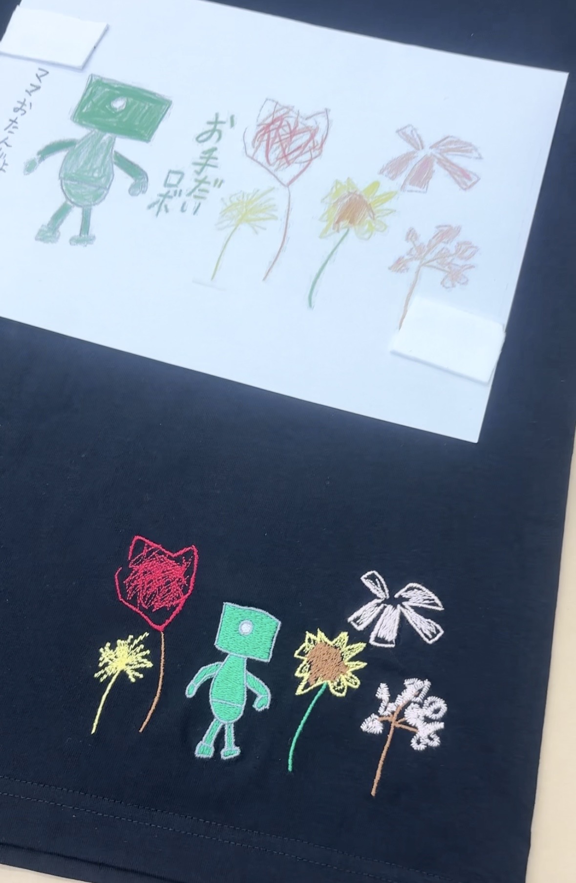 手書きのイラストを刺しゅうTシャツにしてプレゼント!